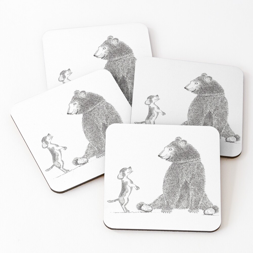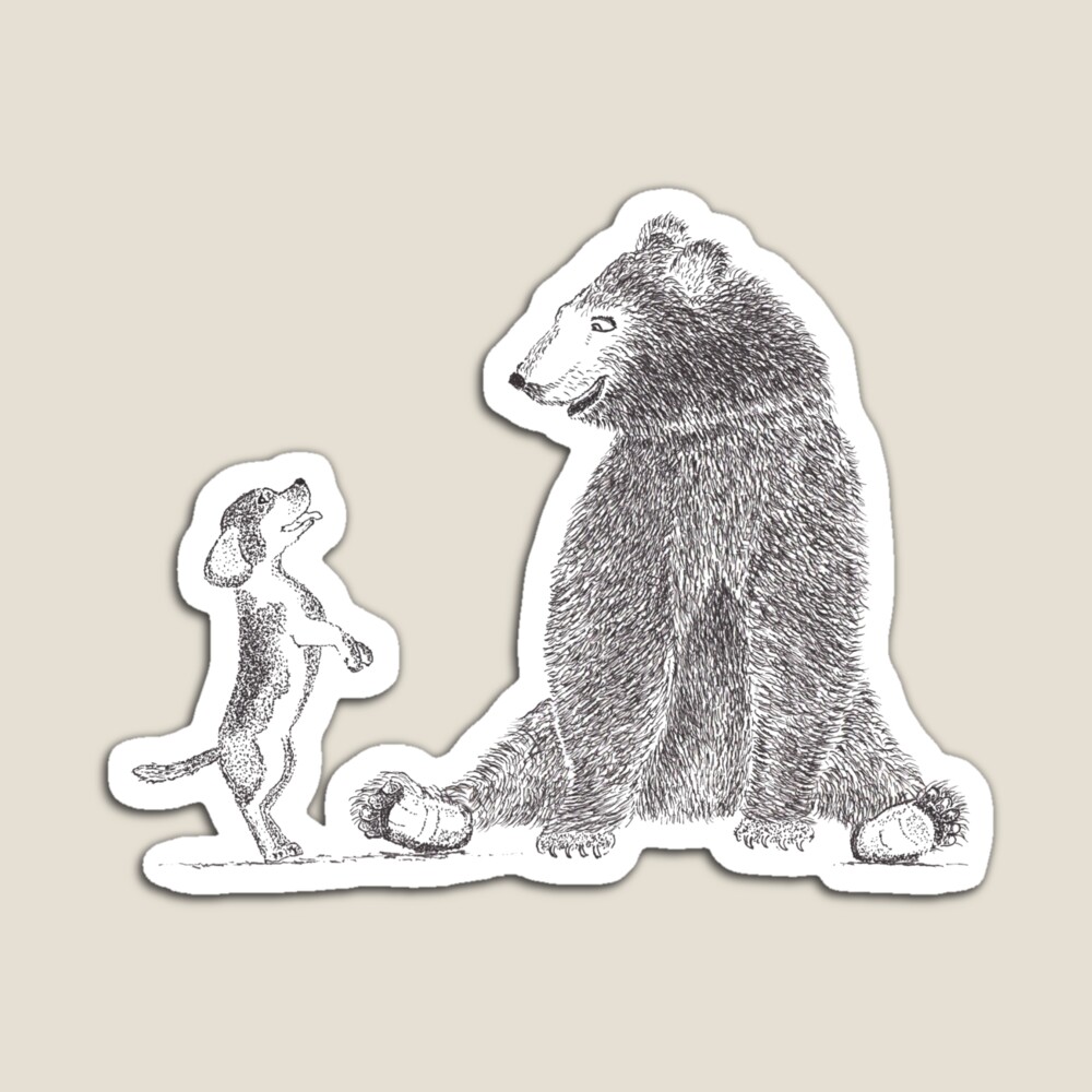 Dog and Bear illustration is available to buy on a Tote bag, coasters, magnets etc. Just click here
