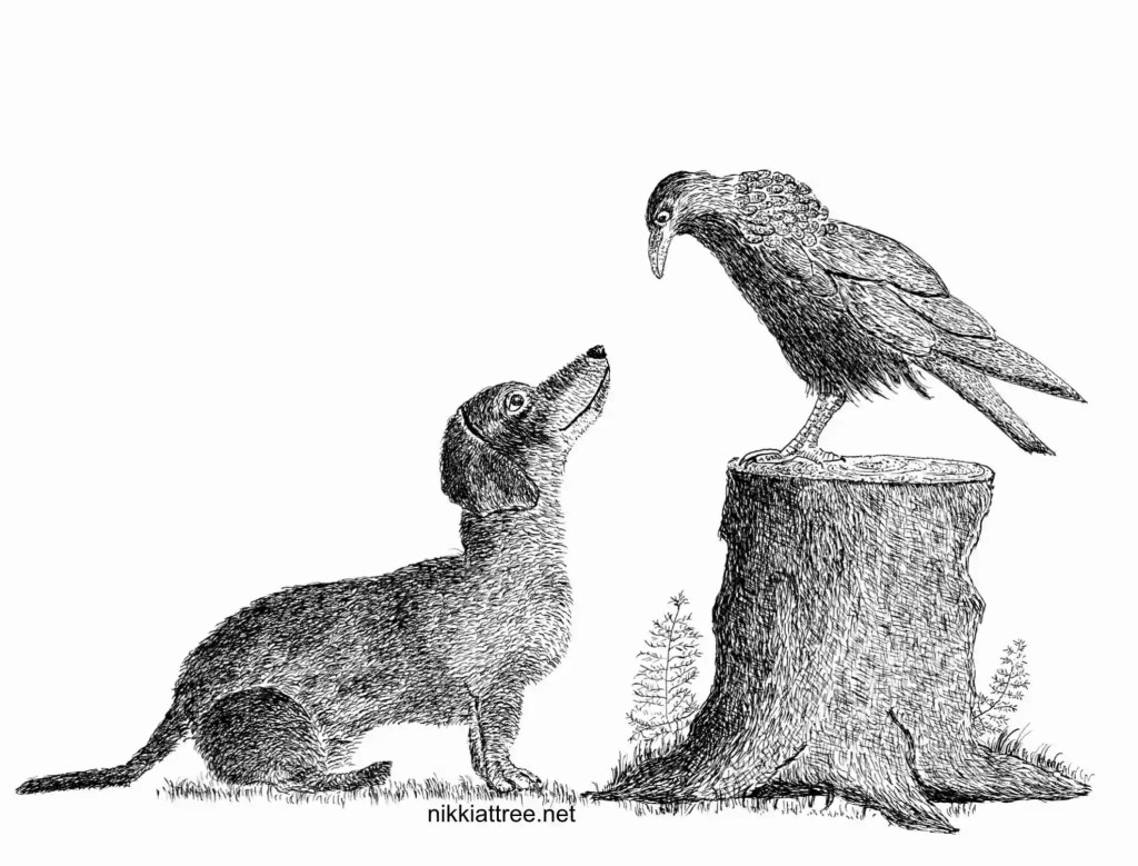 As usual, I’d love people to contribute text to go with my next illustration ‘The Dog and The Crow’ which will be included in my book ‘Once Upon a Time’ – A collection of imaginary animals. Please post your suggestions as comments on the blog post, or send them to me by replying to this email.