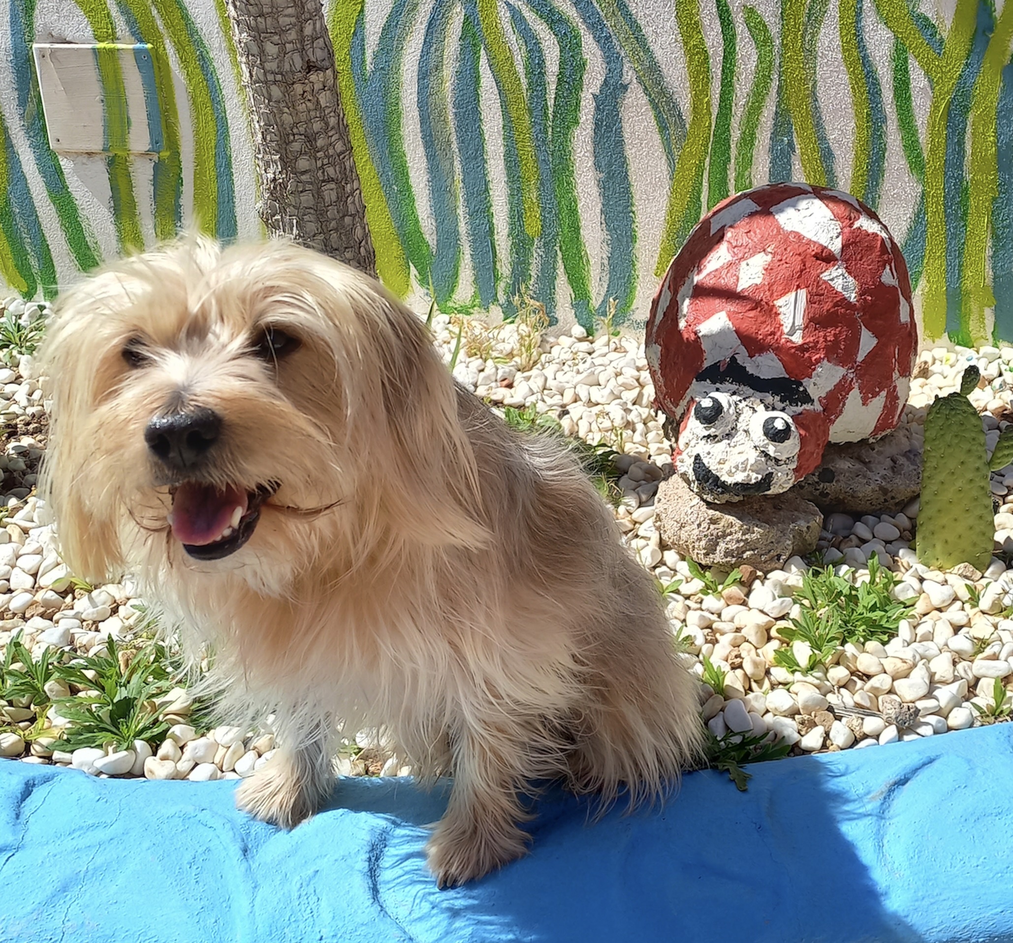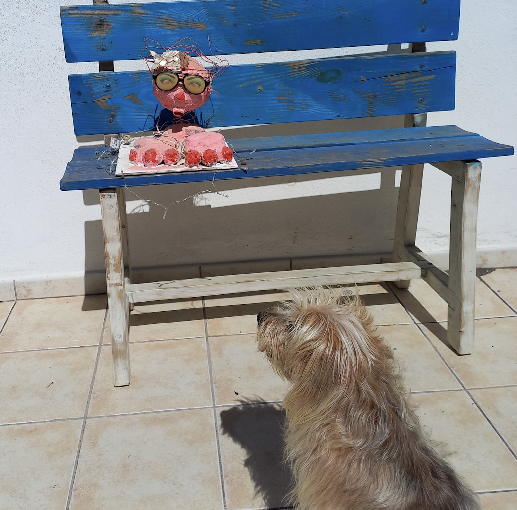 Moving on to happier stuff … Fred has been checking out the art in my sculpture park (our garden). Which is his favourite? I wonder …