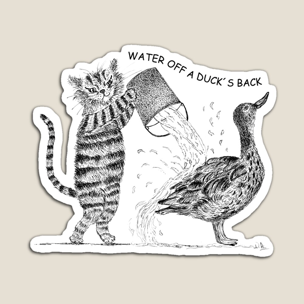 ‘Water off a Duck’s Back’ illustration is available on Magnets, Tote bags, posters, coasters from my shop on Redbubble