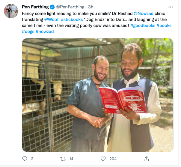 Pen Farthing author and founder of Nowzad charity kindly gave me a quote for the front cover of Dog Endz´and my book was read by the vets working in the animal refuge Afghanistan, Kabul. As you see from the photo it made them laugh.